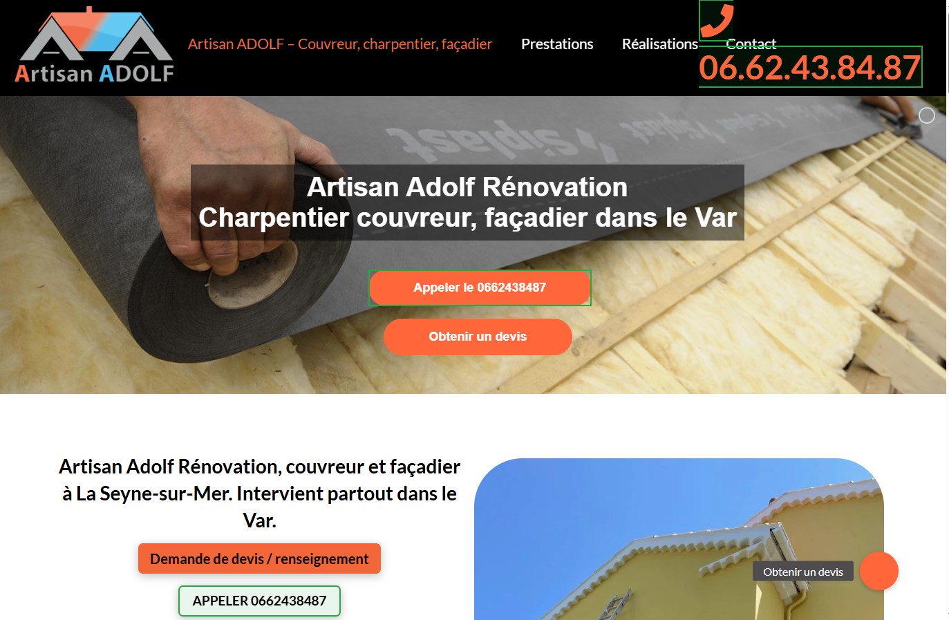 Artisan Adolf Rénovation, à La Seyne-sur-Mer, est une entreprise spécialisée dans les travaux de couverture, de charpente et de façades. Fort de son expérience et fils de compagnon, Adolf met son savoir-faire au service des particuliers pour l’entretien, la réparation et la rénovation de leur habitat. L’entreprise allie rigueur, qualité et respect des engagements afin de réaliser des prestations durables et esthétiques.